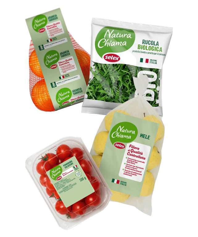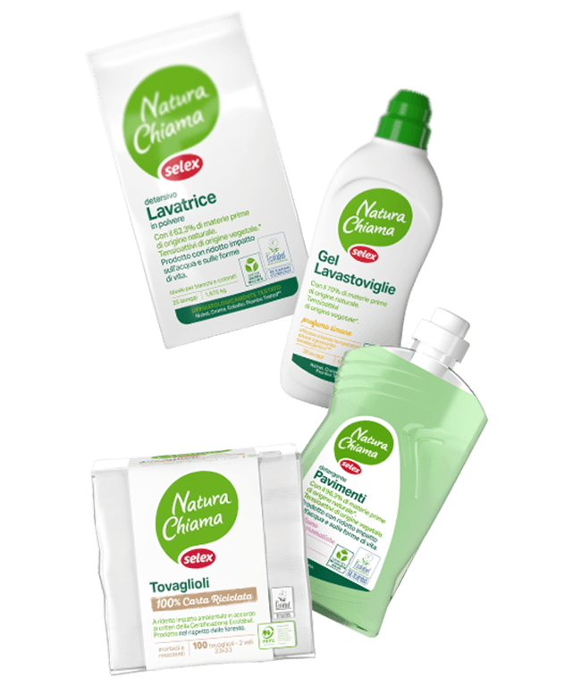 Quando la Natura Chiama… Selex risponde. Con questo slogan si può spiegare il senso dei prodotti con il marchio Natura Chiama Selex. Se scegli gli articoli identificabili con questa etichetta, siano essi alimentari oppure no, puoi stare tranquillo: stai facendo una scelta di sensibilità e di attenzione all’ambiente, optando per una linea improntata al rispetto dell’equilibrio fra uomo e natura. Questi prodotti a ridotto impatto ambientale sono suddivisi in quattro tipologie: gli alimenti Biologici, l’ortofrutta da Filiera Controllata, quelli derivati da animali allevati fin dalla nascita Senza Antibiotici e, infine, gli articoli per la casa a ridotto impatto ambientale.