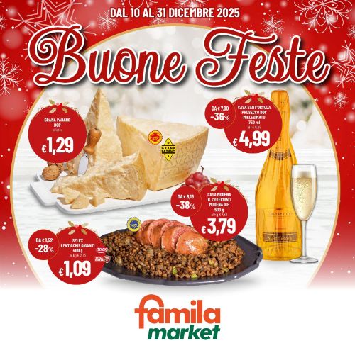 Utilizza i punti sulla tua Carta Club Famila dal 1 al 24 Dicembre 2025 per avere subito un Buono Spesa da 25€ o 50€ utilizzabile dal 27 Dicembre al 31 Gennaio 2025!