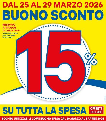 BUONO SCONTO 15% su tutta la spesa!