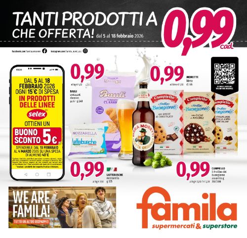 FAMILA tratta i tuoi dati con cura, nel rispetto dell'attuale normativa. Fornisci il consenso MARKETING ed il consenso alla PROFILAZIONE dall'area myFamila per assicurarti promozioni...